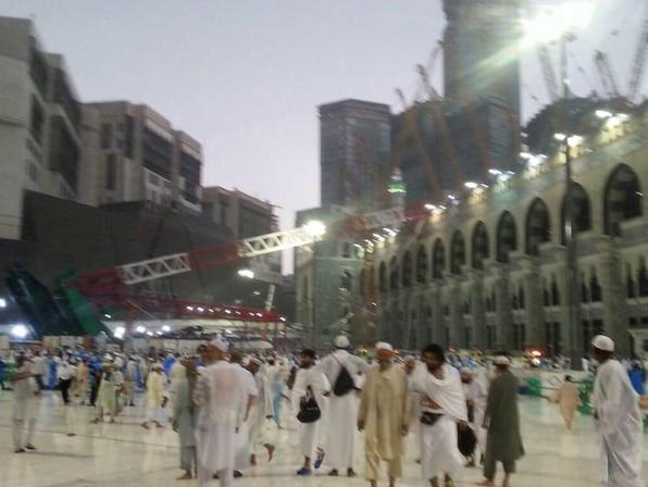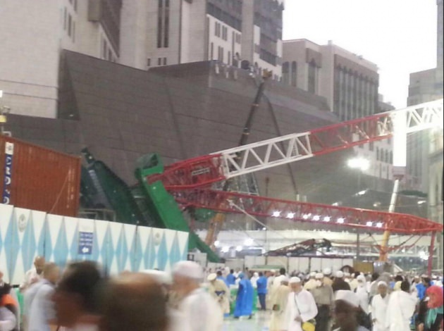 Kabe'de şiddetli yağış ve fırtına sonucu yıldırımın çarptığı bir vinç hacı adaylarının üzerine düştü. Suudi Arabistan hükümeti tarafından aktarılan son bilgiye göre olayda hayatını kaybedenlerin sayısının 107'ye yaralananların sayısının da 238'e yükseldiği belirtildi.