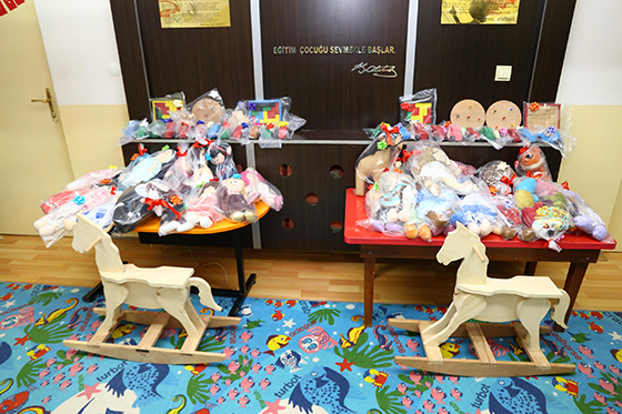 Arhavi Halk Eğitim Müdürlüğünün üstlendiği "Bebeğim Elimde Sağlığım Güvende" projesi kapsamında ana sınıfı öğrencilerinin yıl boyunca ihtiyaç duyacakları bebek, hayvan figürü ve benzeri 60 organik oyuncak, bebek yapım kursu usta öğreticisi Vahide Aydın ve kursiyerleri tarafından hazırlandı.