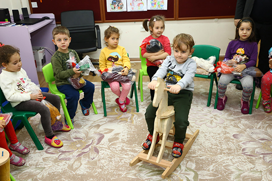 Arhavide üretilen doğal malzemeden yapılmış oyuncaklar, Gaye Çarmıklı Anaokulu öğrencilerine dağıtıldı.