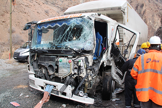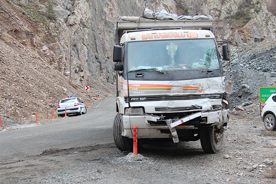 Süleyman Köse (52) yönetimindeki 25 SE 523 plakalı kamyon, Artvin-Erzurum karayolunun 65. kilometresinde karşı yönden gelen ve sürücüsü henüz belirlenemeyen 25 FR 563 plakalı plakalı kamyon ile çarpıştı.