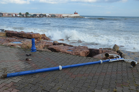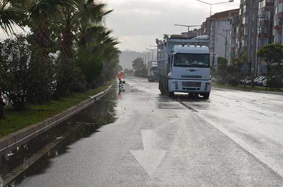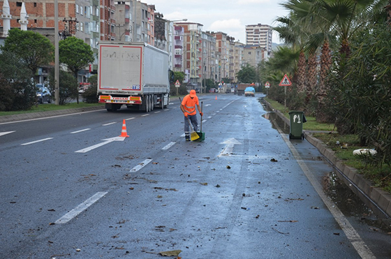 Yoldan geçen araçların zarar görmemesi için polis önlem aldı, belediye görevlilerince yollar temizlenmeye çalışıldı. Dalgadan dolayı yolda su birikintisi meydana gelirken, kayalara çarparak yola sıçrayan dalganın 3-4 metre yükseldiği görüldü. Sahildeki ışıklandırma direkleri dalgalar yüzünden yıkıldı. Yolda meydana gelen kirlilik ve dalganın devam etmesi nedeniyle araç geçişleri kontrollü sağlandı.