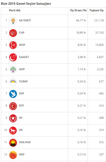 2015 Genel seçimlerinde Rize seçim sonuçlarında Rize'yi 3-0 yaparak geleneği bozmadı..