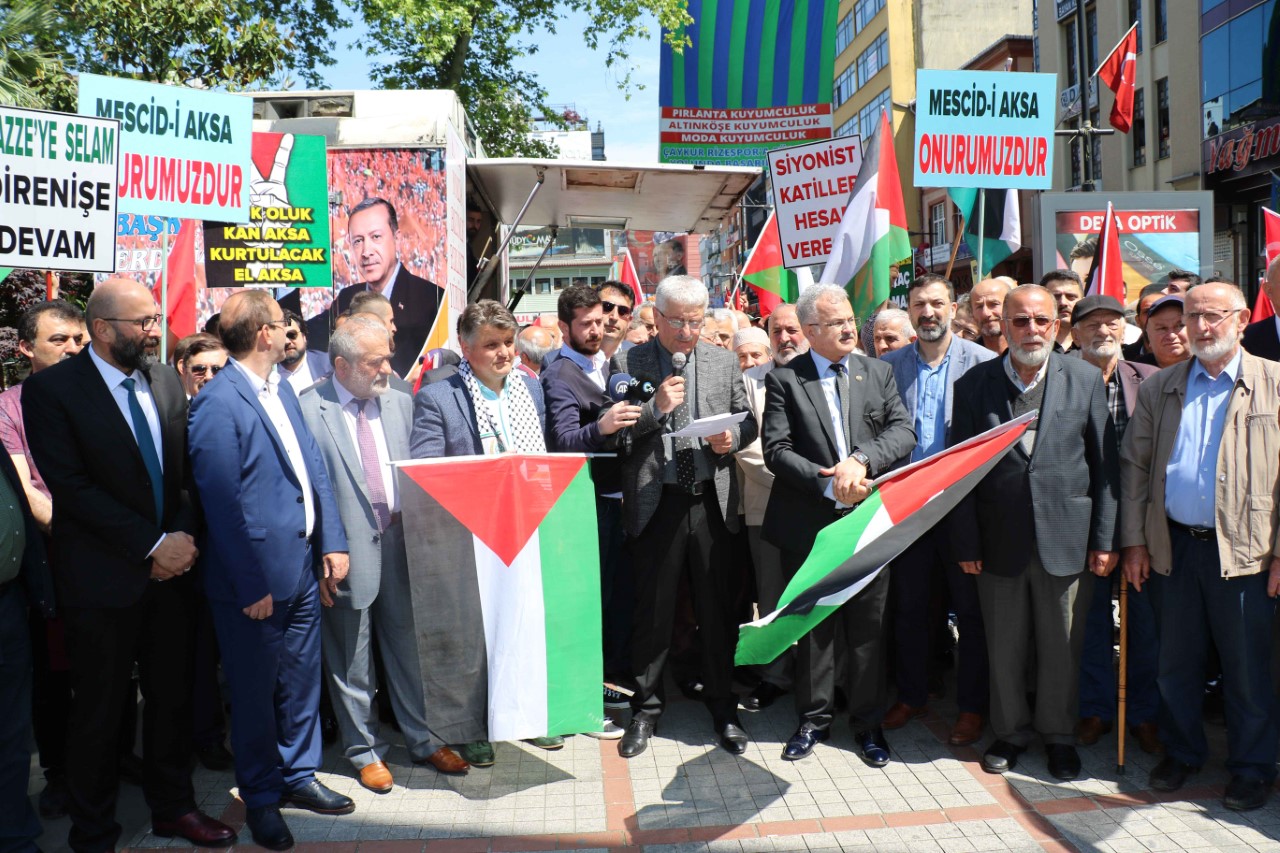 AK Parti Rize İl başkanlığı tarafından İsrail’in Filistende yaptığı katliama tepki olarak Tuzcuoğlu memiş ağa parkında basın açıklaması düzenlendi.