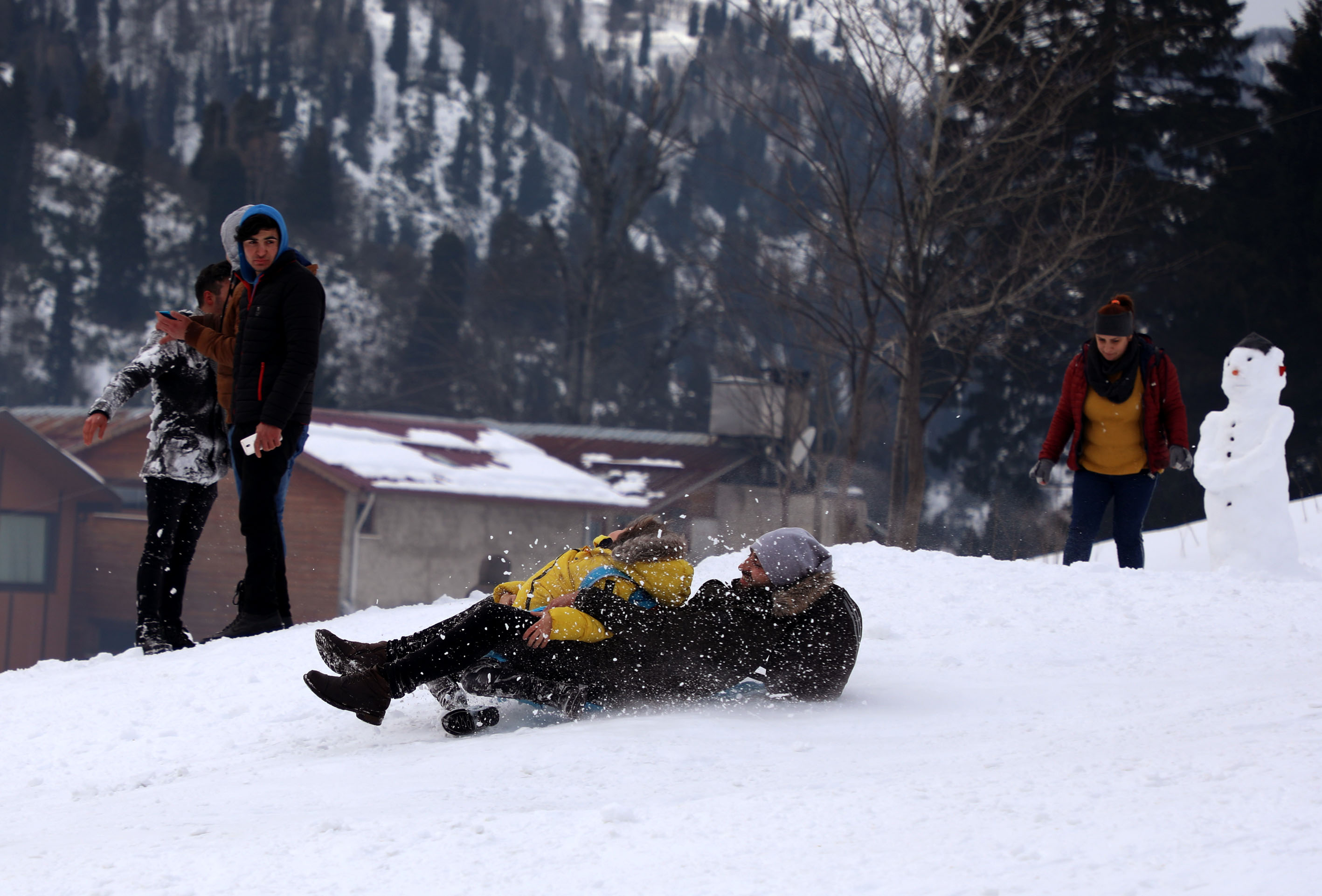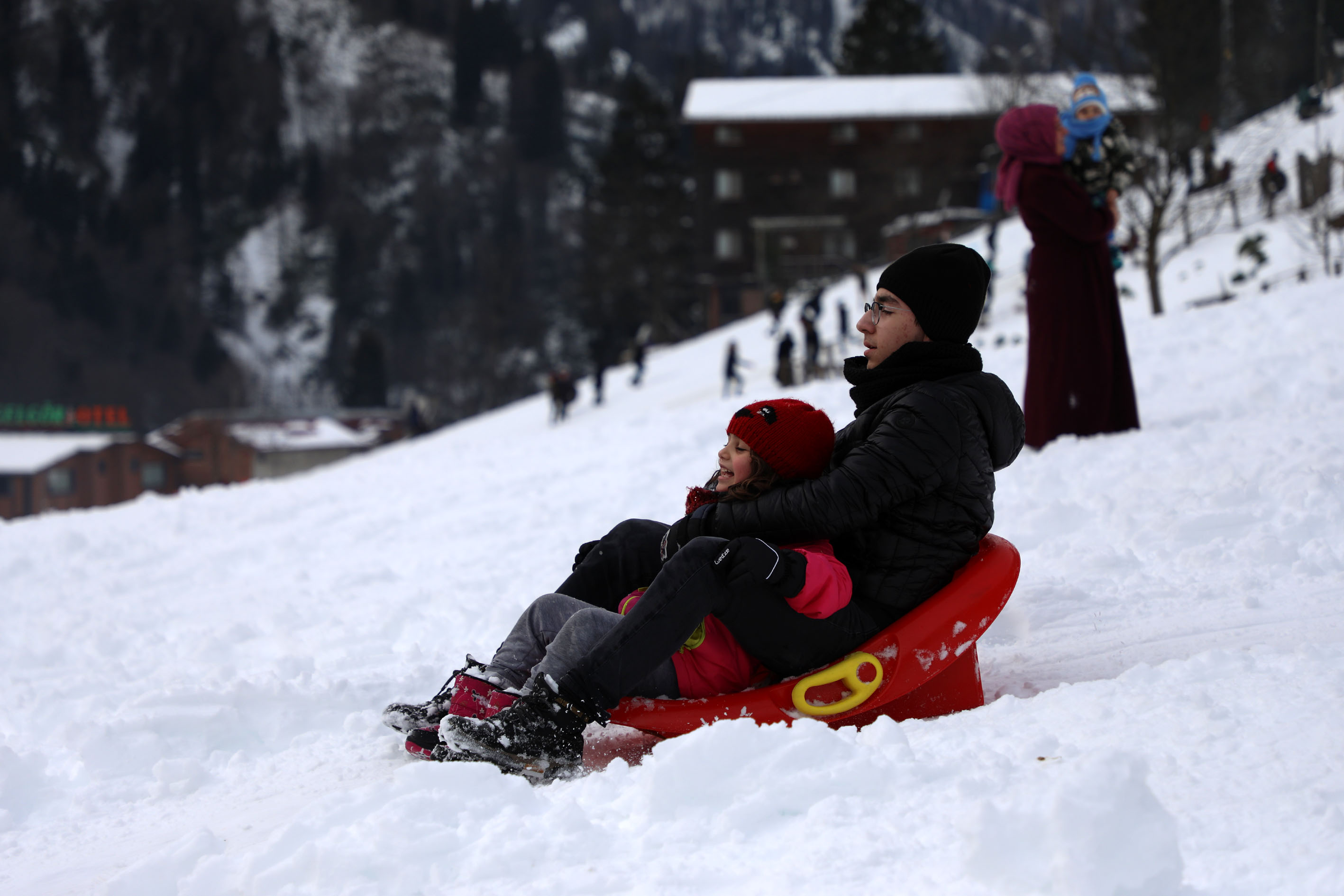 Rize'nin Çamlıhemşin ilçesine bağlı dünyaca ünlü Ayder Yaylası, kar yağışının ardından hafta sonu çok sayıda vatandaşı ağırladı.