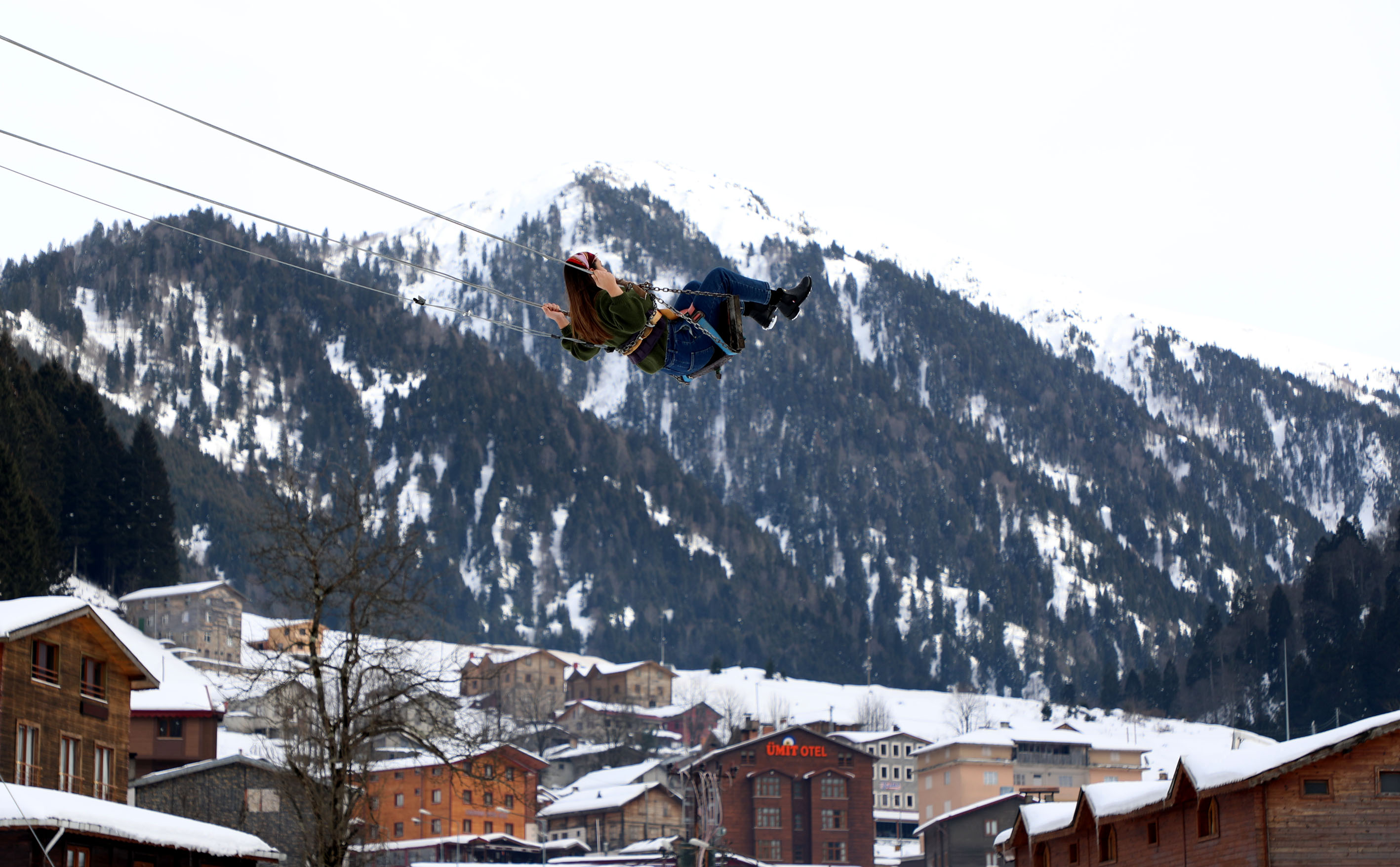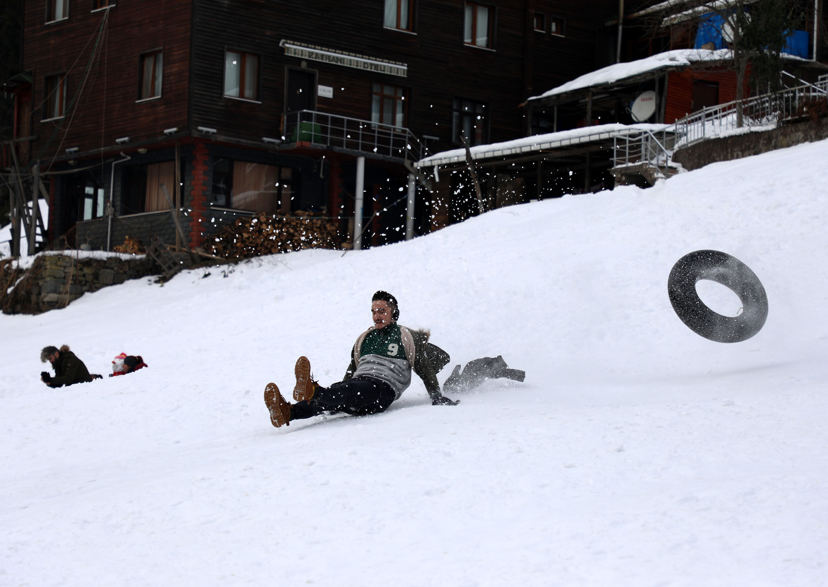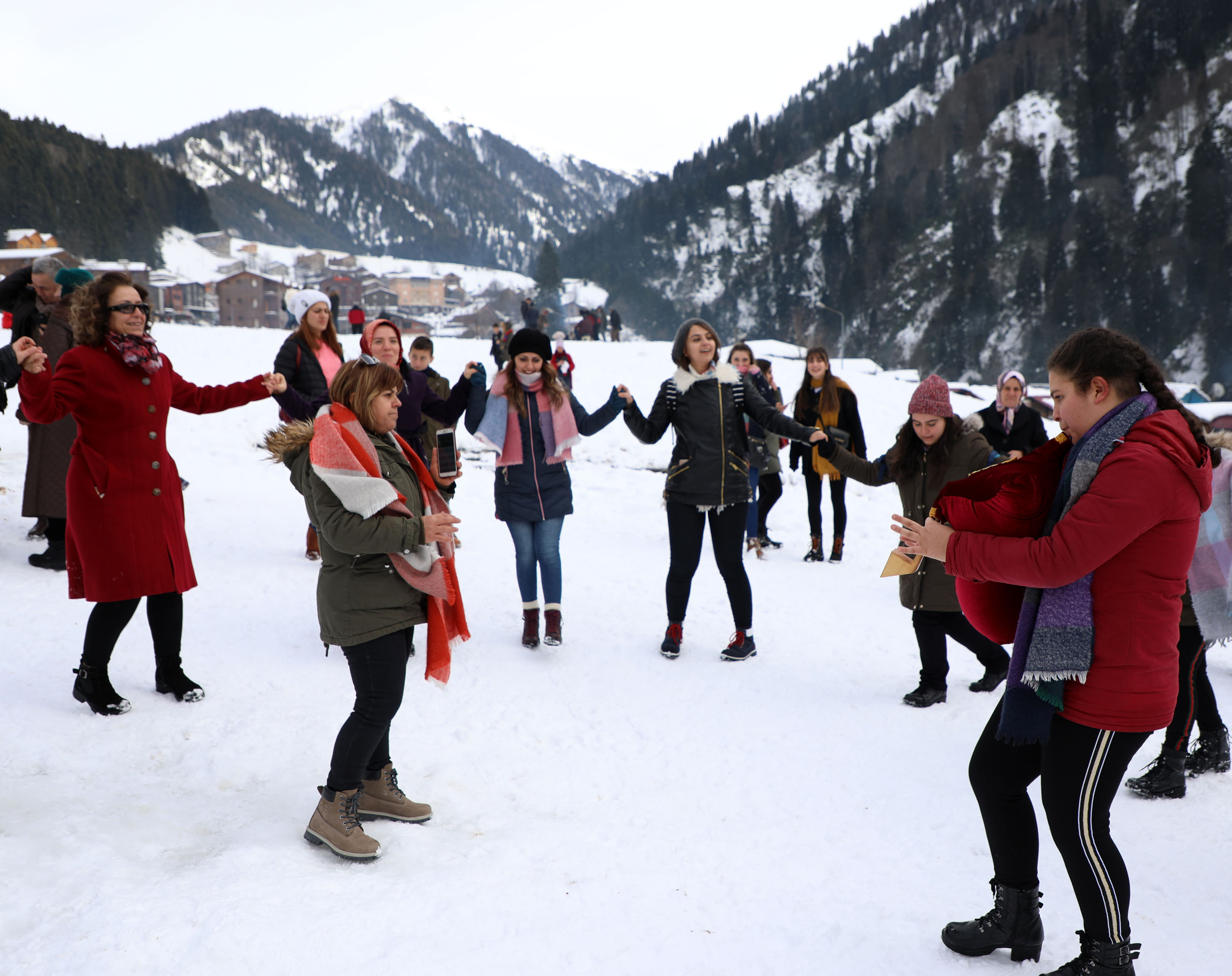 Kartopu oynayıp karın tadını çıkaran vatandaşlardan bazıları ise şambrel ve poşetlerle kayarak keyifli anlar yaşadı. Bazı ziyaretçiler kurulan salıncaklar eşliğinde görsel şölenin keyfini çıkardı, kimileri de kar üstünde horon oynadı.