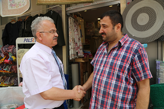 Mesaisine esnaf ve vatandaşın talep ve düşüncelerini dinleyerek devam eden Başkan Kasap, “Esnaf kardeşlerimize ve vatandaşlarımıza yaptığımız her projede halkımızın yaşamını kolaylaştırmak için çaba sarfettiğimizi anlatıyoruz. Dört buçuk yıl önce başlamış olduğumuz Belediye Başkanlığı görevim içerisinde, yaptığımız hizmetleri ve yapmayı planladığımız çalışmalarla ilgili karşılıklı istişarede bulunuyoruz. Vatandaşlarımızın yapılan hizmetlerden memnuniyetlerini dile getirmesi bizleri mutlu ediyor” dedi.