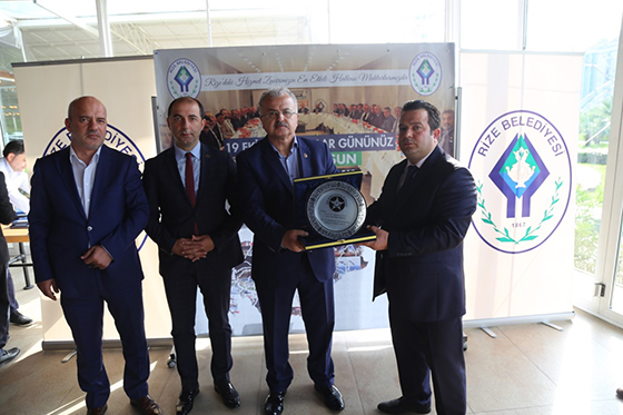 Rize Merkez Muhtarlar Derneği Başkanı İrfan Kaya da Başkan Kasap’a sunmuş olduğu özverili çalışmalardan dolayı teşekkür plaketi takdim etti.