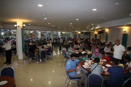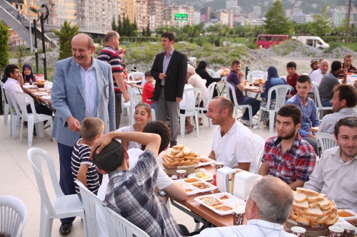 İftar Yemeklerinde Rize’li hemşehrilerini yalnız bırakmayan Belediye Başkanı Halil Bakırcı, herkesin tabağına yemek doldurdu, sohbet etti ve İftar larını birlikte açtı. Halil İbrahim sofrasından Tüm hemşehrilerine yaptığı açıklama da ise Başkan Bakırcı, şu ifadeleri kullandı; “ Bu soframız Ekonomik gücü zayıf olan insanlarımızın sofrası değildir.Bütün Rize halkının sofrasıdır.Herkese açıktır. Geçtiğimiz yıl Günlük bin beşyüz kişi ortalama kapasite ile çalışıyorduk, bu yıl biraz daha sayıyı artırıp 2500 kişinin iftar yemeğinde bir araya gelmesini sağladık. Bu sofra da önümüze gelen tüm yemekleri Rizeli esnaflarımız ve İstanbul daki hemşehrilerimiz yaptıkları bağışlarla karşılıyorlar biz de belediye olarak tüm işçiliğini yaparak Vatandaşlarımıza sunuyoruz.” Dedi