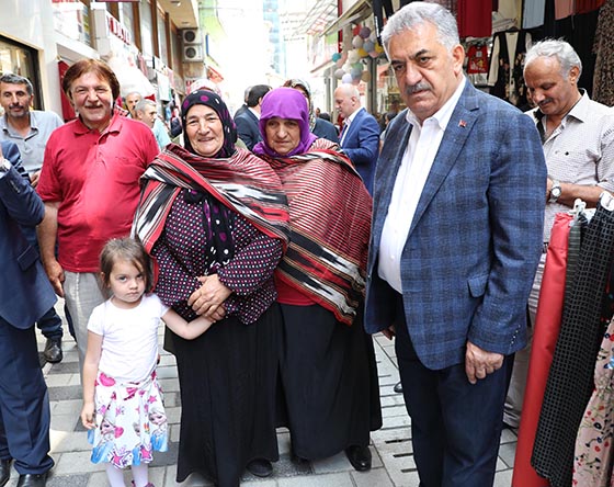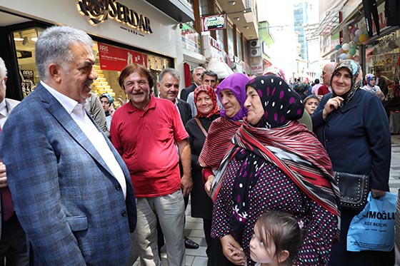 Yazıcı, seçim çalışmaları kapsamında Rize'de Kuyumcular Sokağı'nda esnaf ziyaretinde bulundu.