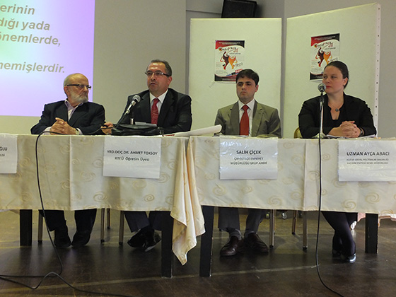 ‘Kadın erkek el ele mutlu bir geleceğe’ konulu panele Bölgenin sevilen siması Necati Hutoğlu, RTEÜ Öğretim Üyesi Yardımcı Doç. Dr. Ahmet Toksoy, Çayeli İlçe Emniyet Müdürlüğü Grup Amiri Salih Çiçek ve Ankara Aile ve Sosyal Politikalar Bakanlığından Konu Uzmanı Ayça Abacı konuşmacı olarak katıldı.