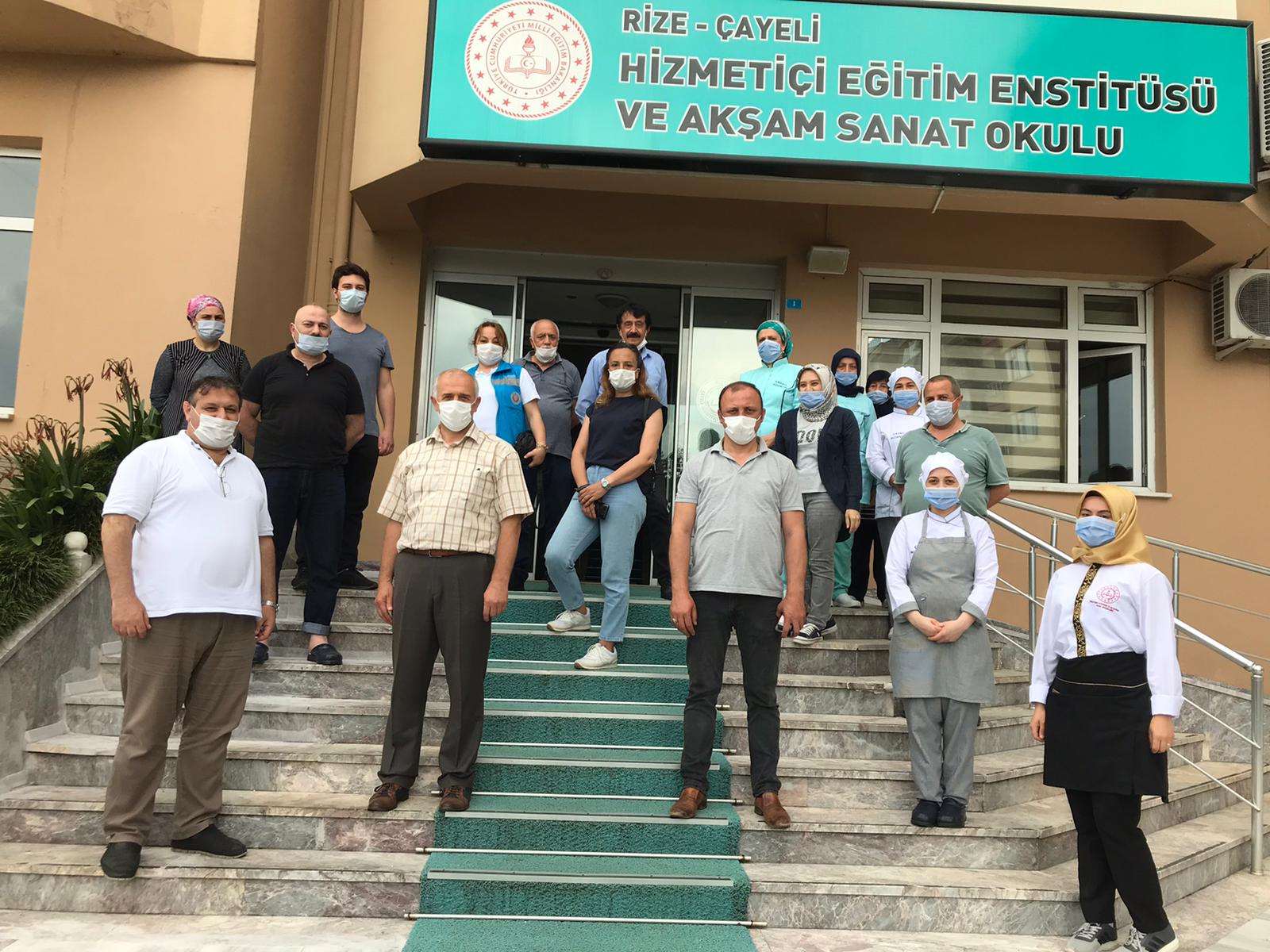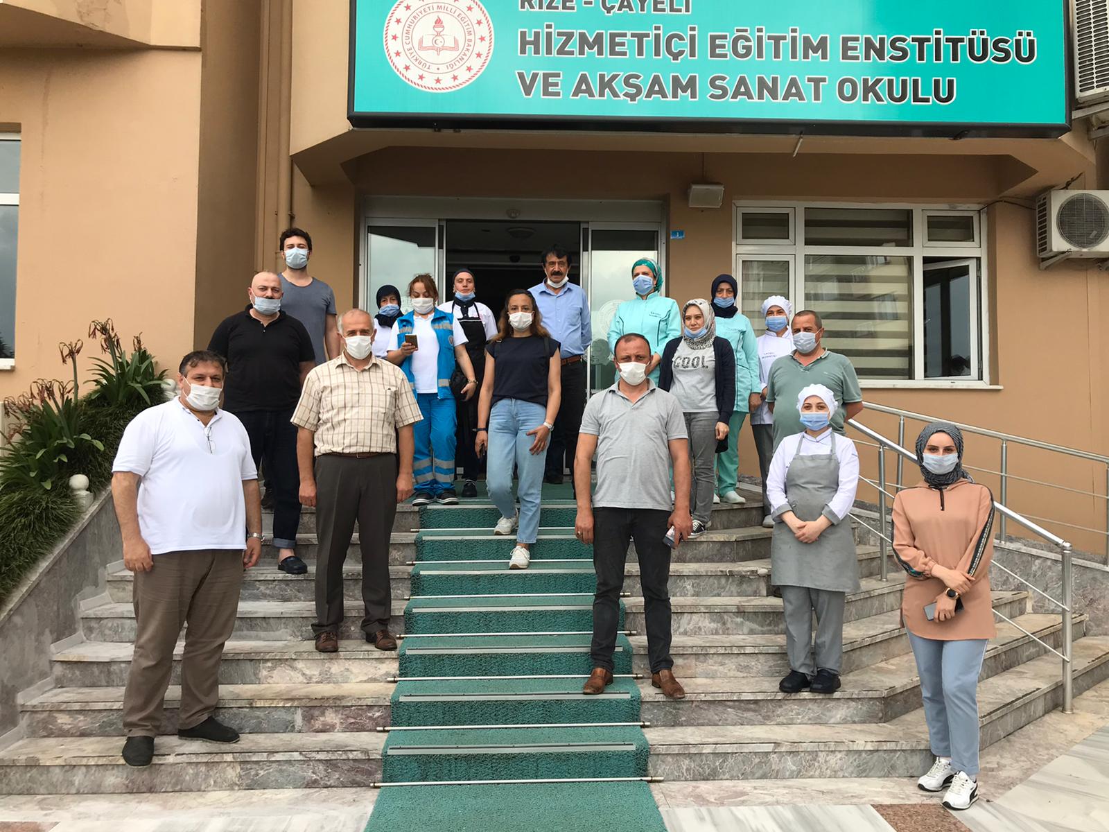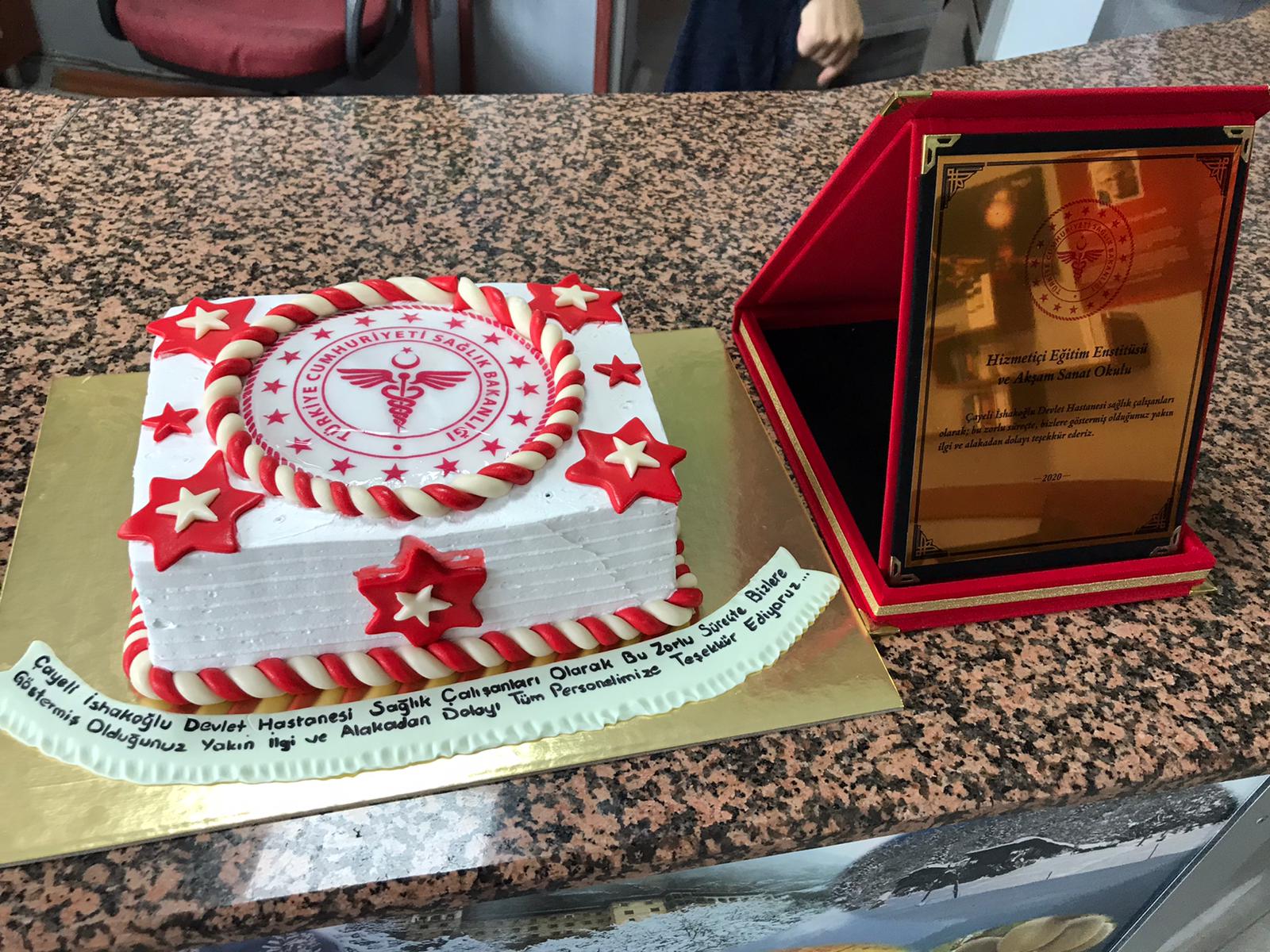 Çayeli İshakoglu Devlet Hastanesi’nde çalışan sağlık personelleri aylardır Çayeli Hizmetiçi Eğitim enstitüsü ve akşam sanat okulunda konakladı. Sağlık çalışanları da bu iyiliği karşılıksız bırakmadı. Hastanenin Başhekimi Yahya Kesici ve beraberinde ki sağlık çalışanları idari personeli ve bütün çalışanları ziyaret ederek pasta kesildi. Başhekim Kesici, günün anısına birde plaket takdim etti.