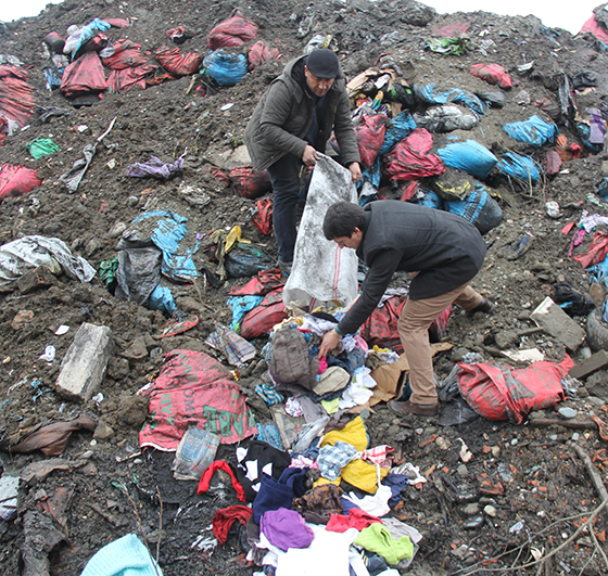 ÇÖPLÜKTEKİ YARDIM ELBİSELERİNİN ETİKETLERİ ÜZERLERİNDE