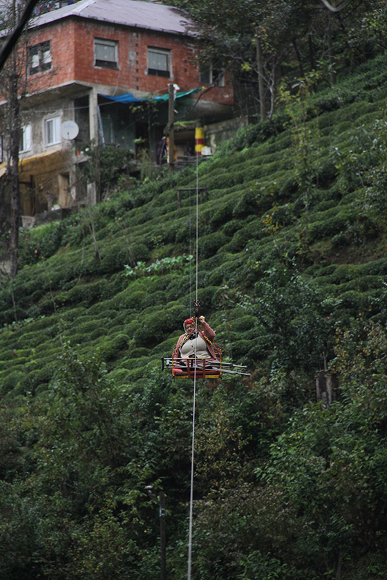 Rize’de kuma olan iki yaşlı kadın, geçirdikleri rahatsızlıklardan dolayı yolu olmayan evlerine ulaşmak için ölümü göze alarak 70 metre derinlikteki vadiyi ilkel teleferikle geçiyorlar.