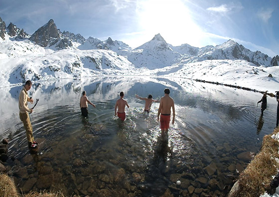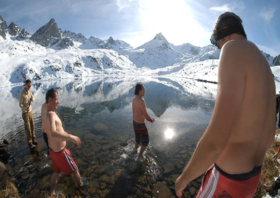 Yurt içerisinden ve yurt dışından şenliğe katılanlar burada dondurucu soğuğa aldırış etmeden buzul gölüne girerek yüzdüler. Bölgede bulunan yaklaşık 1 metre kara, o derecenin altındaki soğuk ve göl üzerindeki buz kütlelerine rağmen göle girme cesareti gösteren katılımcıların bir hayli üşüdükleri attıkları çığlıklar ve titremelerinden anlaşıldı. Üşüyenler buzullar arasında Rize çayı içerek ve çalan tulum eşliğinde horon oynayarak ısındılar.