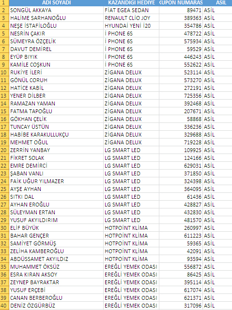 Hapeloğlu Avm'de 111 Hediye sahibini buldu...Tam Liste Çaytvhaber.com'da