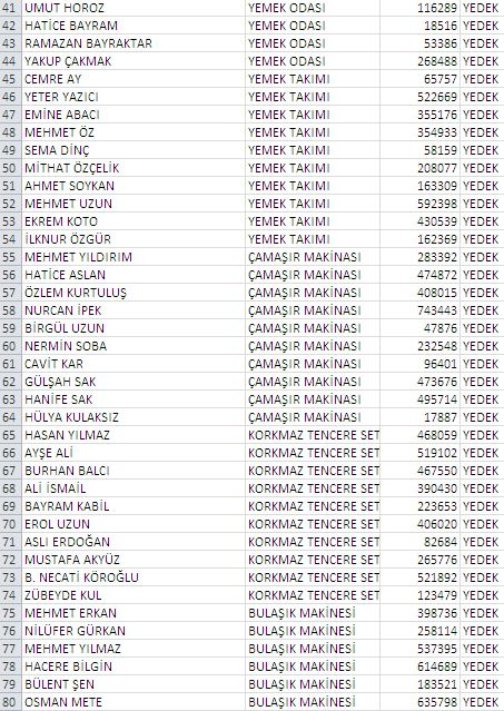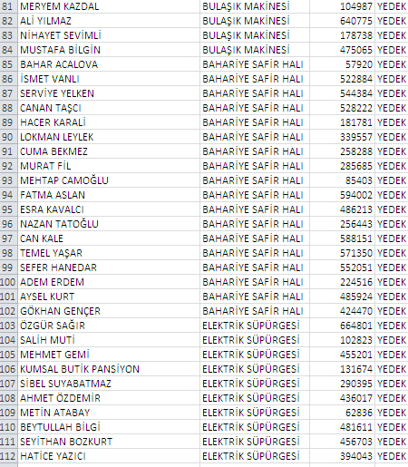 YEDEK LİSTE