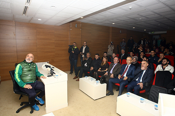 Osmanlıspor maçı hazırlıklarını sürdüren Çaykur Rizespor'da teknik direktör Hikmet Karaman, Recep Tayyip Erdoğan Üniversitesi’nde öğrenciler ile bir araya geldi. Öğrencilerin sorularını yanıtlamaya hazırlanan Karaman’a ilk olarak öğrenciler tarafından hazırlanan Karaman’ın Galatasaray maçında çekilmiş görüntülerinin yer aldığı bir mini film izlettirildi.