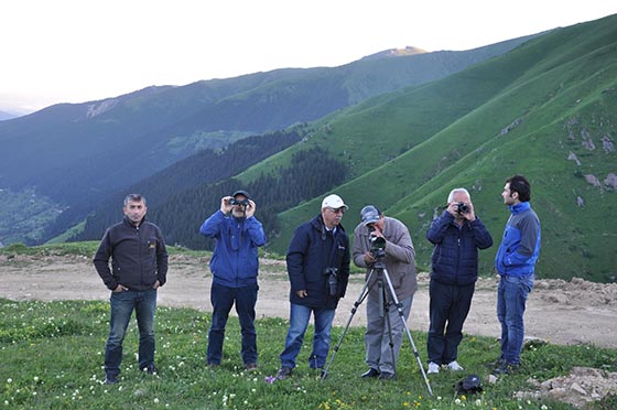 Şenliğe katılanlar, Türkiye'de sadece Doğu Karadeniz'de yaşayan ve nesli tükenme tehlikesi ile karşı karşıya olduğu için koruma altına alınan dağ horozunu görebilmek için saat 04.00'de dürbün ve teleskopla gözleme başladı.