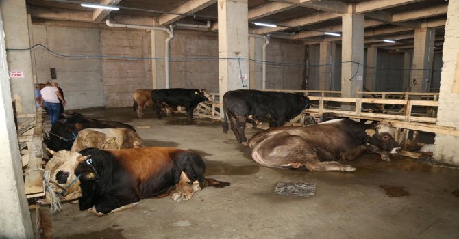 Rize Belediyesi tarafından Çiftekavak mahallesi, eski mezbahane yerinde inşa edilen katlı kurban pazarına 2018 yılının ilk kurbanlıkları gelmeye başladı