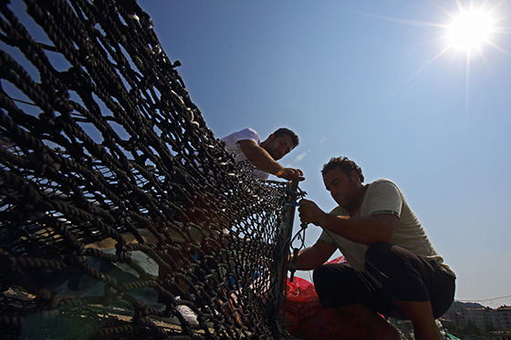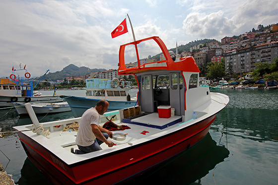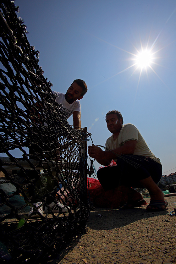 Avlanma sezonuna saatler kala, Akçaabat Limanı'ndaki balıkçılar, onardıkları teknelerinin ve ağlarının son kontrollerini yapıyor.
