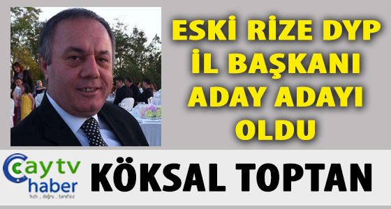 Uzun yıllar Rize siyasetinde görev almış olan , bir dönem Doğru Yol Partisi İl Başkanı Nihat Mete ile beraber İlçe Başkanlığı , İl Başkanlığı gibi görevlerde yapan KÖKSAL TOPTAN , daha güçlü bir Türkiye için safları sıkılaştırmak gerektiğini söyleyerek Cumhurbaşkanimizin başlatmış olduğu tam bağımsızlık,Türkiye’nin yeniden diriliş,yükseliş ve daha güçlü bir Türkiye projesine destek vermek için ADALET VE KALKINMA PARTİSİ İstanbul 3.Bölgeden aday adaylığı başvurusu yaptı..