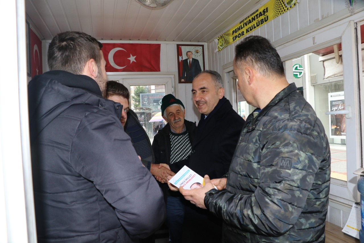 Günün erken saatlerinden itibaren Eminettin mahallesi ve Devlet Hastanesi civarındaki esnafı tek tek ziyaret eden Metin, öğleden sonra ise belediye ve merkez özel idare binası etrafında bulunan esnaflara konuk oldu.