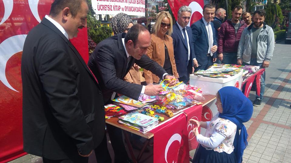 Mhp Rize Merkez ilçe teşkilatı artık geleneksel hale getirdiği 23 Nisan Ulusal egemenlik ve çocuk bayramı standını bu yılda Tuczuoğlu Memişağa parkında açarak çocuklara ücretsiz kitap oyuncak ve çeşitli hediyeler dağıttı.