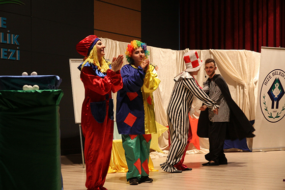 Rize Gençlik Merkezi'nde düzenlenen tiyatro gösterisinde palyaçoların maceraları canlandırıldı. Çocuklar aileleriyle birlikte güzel vakit geçirme fırsatı buldu.