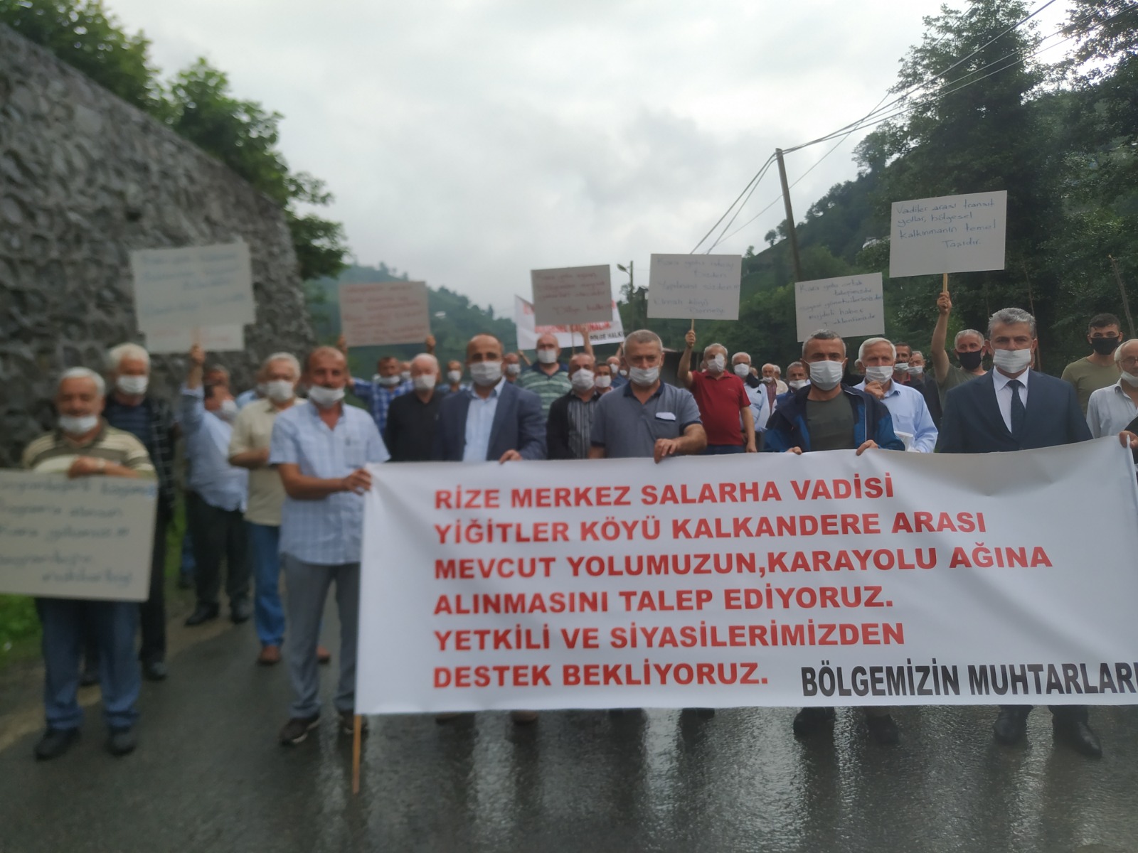 Rize Merkez ile Kalkandere’yi birbirine bağlayan köylerin muhtarları ve köylüler; ulaşım sağlayan bağlantı yolunun karayolları ağına alınması talebiyle toplandı.