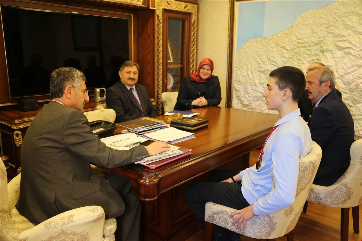 26 il’den 18 bayan 57 erkek olmak üzere toplam 85 özel sporcunun madalya için kulaç attığı şampiyonada; 50 ve 200 metre serbestte birincilik, 100 metre serbest ve 50 metre sırt üstü dallarında ikincilik alan Yusuf Usta, İl Milli Eğitim Müdür Vekili Mustafa Kalender, Okul Müdürü Hikmet Uçar ve Beden Eğitimi Öğretmeni Aykut Benen eşliğinde Rize Valisi Erdoğan Bektaş’ı Makamında ziyaret etti..jpg)
