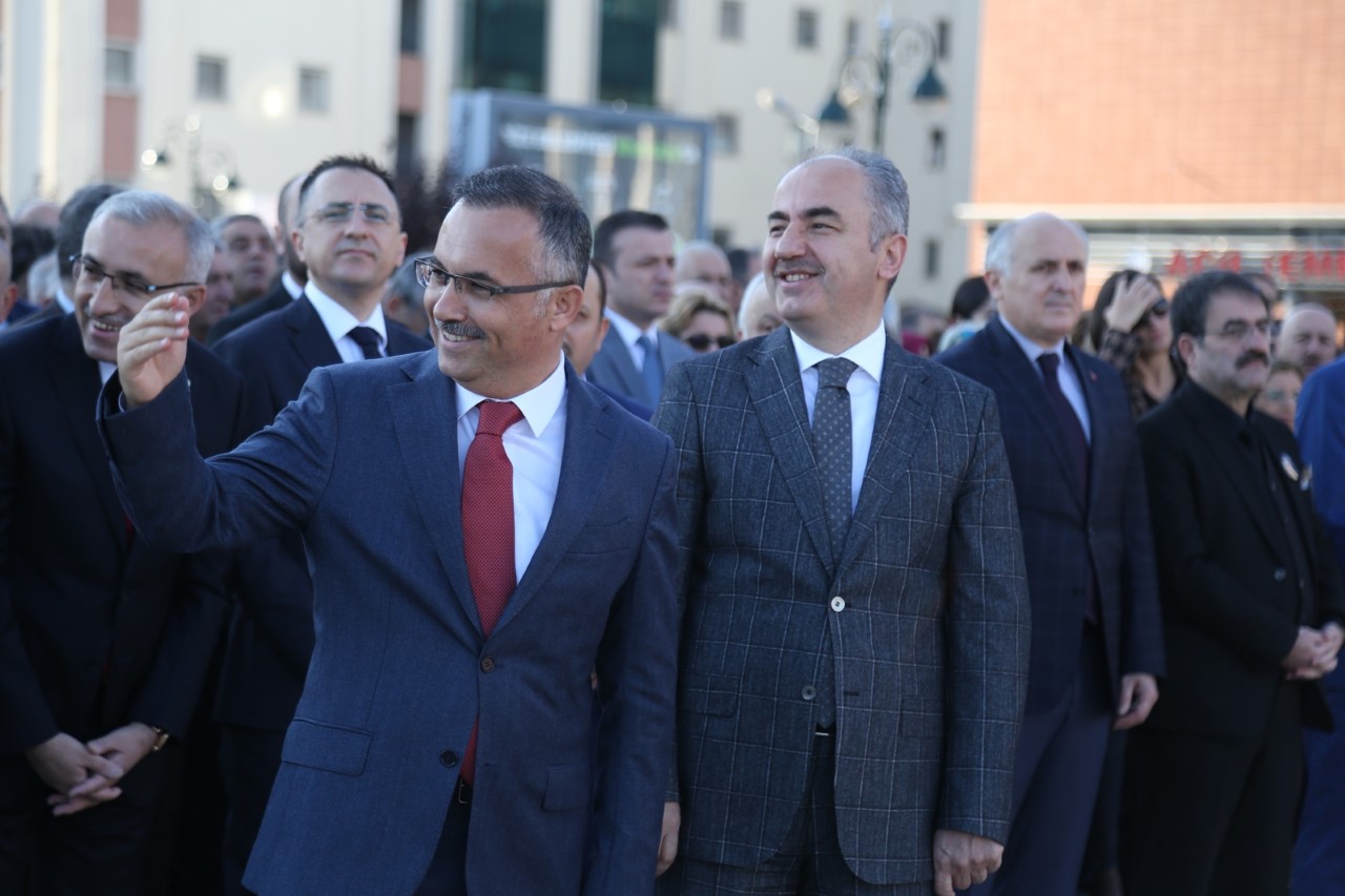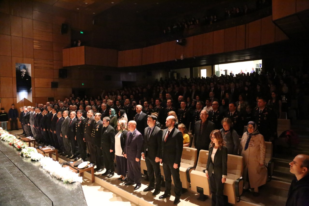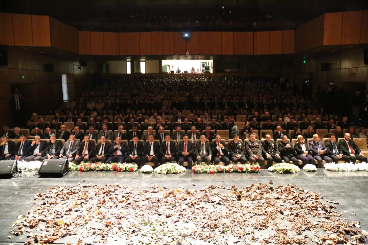 Vali Çeber, Başkan Metin, protokolde yer alan bürokrasi, ve vatandaşlar anma programına katılmak üzere İsmail Kahraman Kültür Merkezine geçti.
