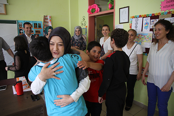Özel eğitim sınıfı öğrencilerini ilk olarak ziyaret eden Menduha Kasap, ardından öğrencilere sürpriz yaparak Rize Belediyesi’nin maskotu ‘Rıza’yı sınıfa davet etti. Sınıfta çocuklar Rıza ile doyasıya eğlendi.