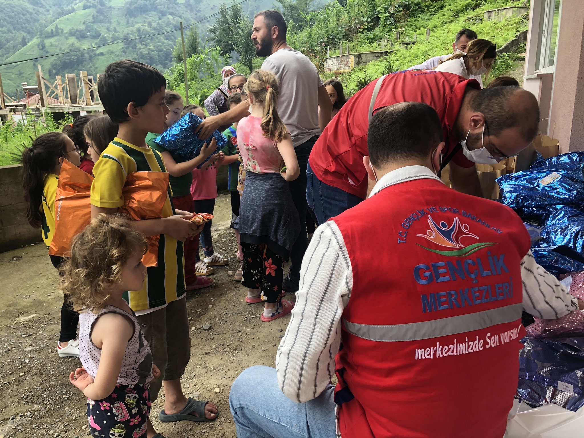 Rize Gençlik Merkezi, İl Sosyal Etüt ve Proje Müdürlüğü, Ebruli Yaşam ve Sanat Derneği ve MEKADER ile birlikte gerçekleştirdiği proje kapsamında bugün Çamlıhemşin'in Dikkaya köyünde çocuklara bayramlık dağıtımında bulundu.