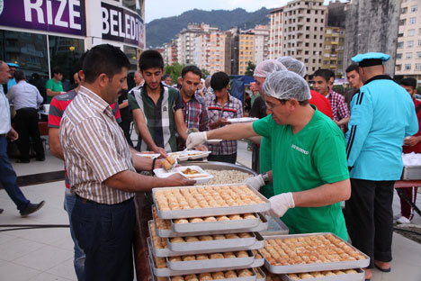 Rize Belediye Başkanı Prof. Dr. Reşat Kasap’ın da yakından takip ettiği ve vatandaşlarla beraber orucunu açtığı iftar alanında hayırsever iş adamları tarafından iftar yemeği veriliyor.