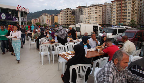 Binlerce kişinin katıldığı İftar yemeklerinde Rize’nin önde gelen isimleri de orucunu vatandaşlarla beraber açıyor. Lokanta ortamında kurulan iftar sofrasında Rize Belediye Başkanı Prof. Dr. Reşat Kasap’ın yanı sıra Ak Parti Rize İl Başkanı Hikmet Ayar, İl Başkan Yardımcısı İsmail Kosif, Rize Belediyesi Başkan Yardımcıları İsmail Hakkı Soba, Mustafa Altay, Rize Belediyesi Özel Kalem Müdürü İshak Alim, Ak Parti Rize İl teşkilatı ve Rize’nin sevilen İş adamlarından Ekşioğlu Derneği Başkanı Ali Ekşioğlu orucunu vatandaşlarla beraber açtı