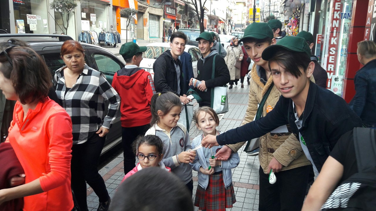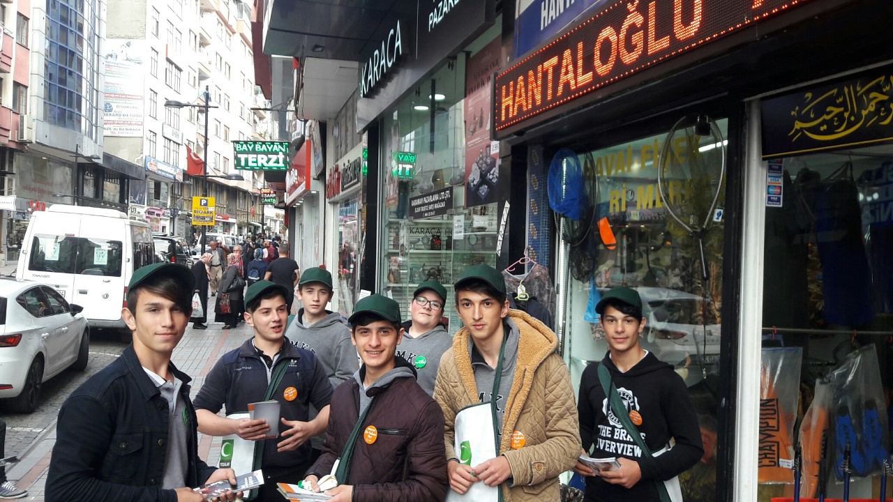RİZE İMKB MESLEKİ VE TEKNİK ANADOLU LİSESİ öğrencileri Atatürk Caddesindeki esnafları ve vatandaşları broşür dağıtarak bilgilendirdi...
