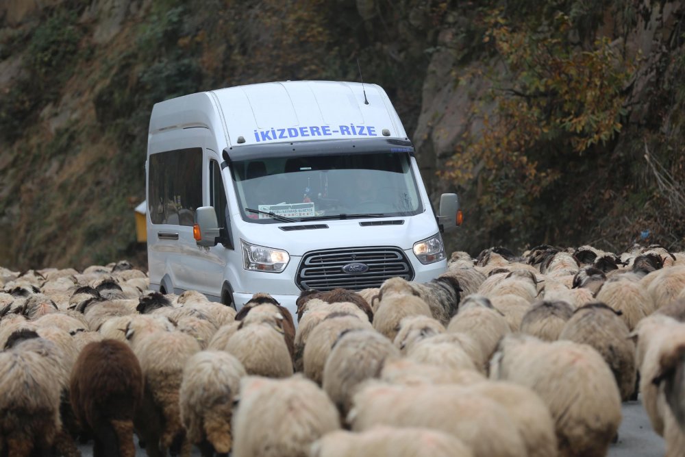 Doğu Karadeniz'de kar yağışı ile birlikte yaylalar beyaza büründü. Yaylalardan göç etmeye başlayan çobanlar da yola koyuldu. İkizdere ilçesi Anzer Yaylası'ndan yaklaşık 300 küçükbaş hayvanı 3 gün önce yola çıkan Hüseyin Şinafor ve yeğeni Recep Ali Şinafor sürüyü karayolundan yürüttü. Sürüsü ile karayolunda ilerleyen çobanlar, trafikte ilginç görüntüler oluşturdu. Koyun sürülerinin geçtiği karayolunda zaman zaman trafik aksadı. Çobanlar trafik akışını kontrol etmeye çalışarak sürüsü ile karayolunda yol aldı. Karayolunda araçları ile ilerleyen sürücülerde şaşkın bakışlar altında koyun sürüsünün arasından geçerek yoluna devam etti. Kimi sürücüler araçlarının etrafını saran sürüyü cep telefonları ile görüntüledi. Çobanlar, 2 gün daha sürecek yolculukla İyidere ilçesine ulaşacak.