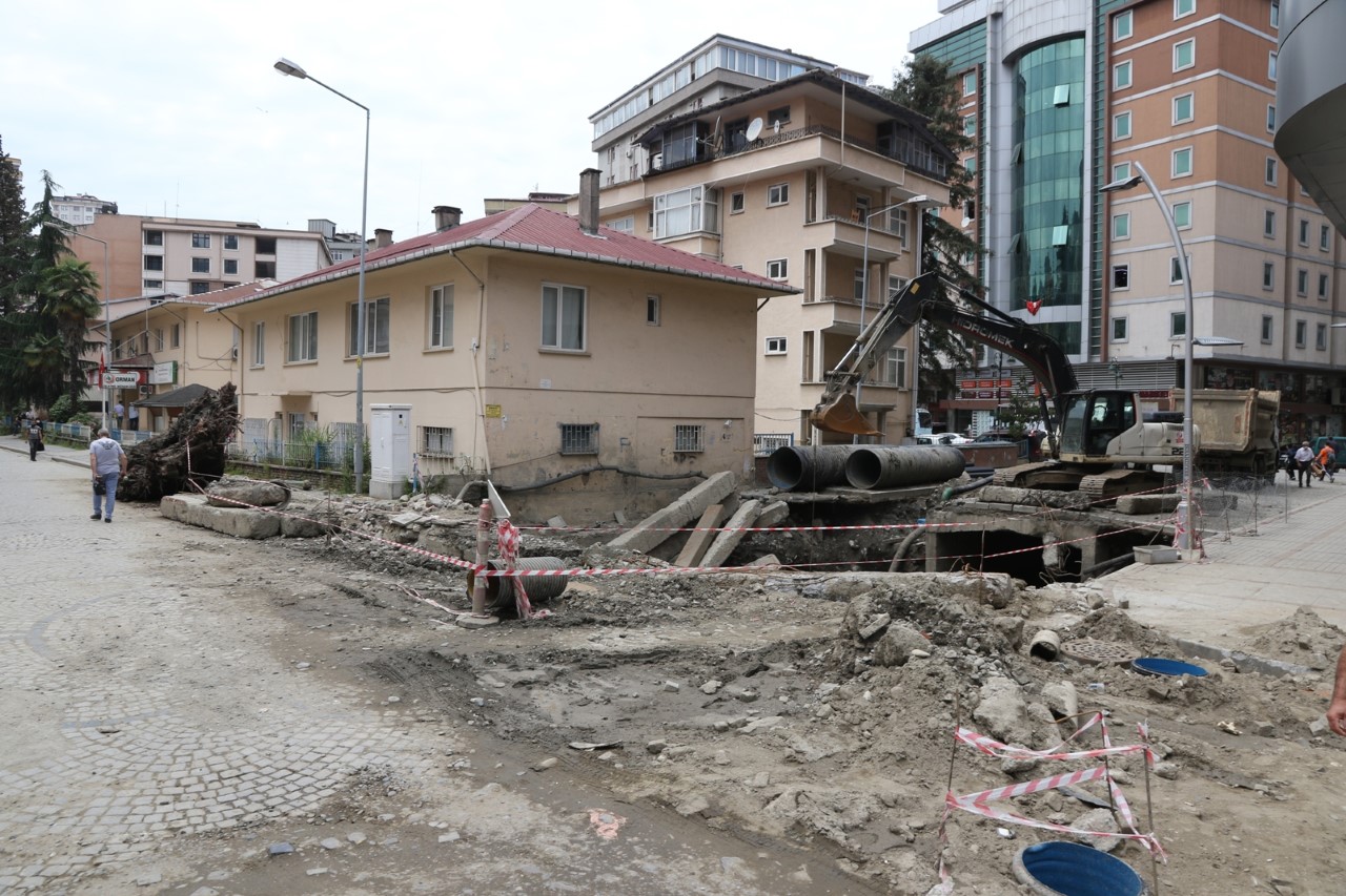 Ayrıca çalışmalar kapsamında eski menfez içerisinden geçen ve suyun akışına engel olabilecek diğer altyapı tesisatları dereden uzaklaştırılarak ayrı bir hatta taşındı. Çalışmalarda Atatürk Caddesi kısmına gelinirken, son yapılan kazı esnasında dere yatağı içerisinden çıkan dev ağaç kökü ise görenleri şaşkına çevirdi. Oldukça büyük bir yapıya sahip olan ağaç kökü iş makinesi vasıtasıyla kenara alındı.