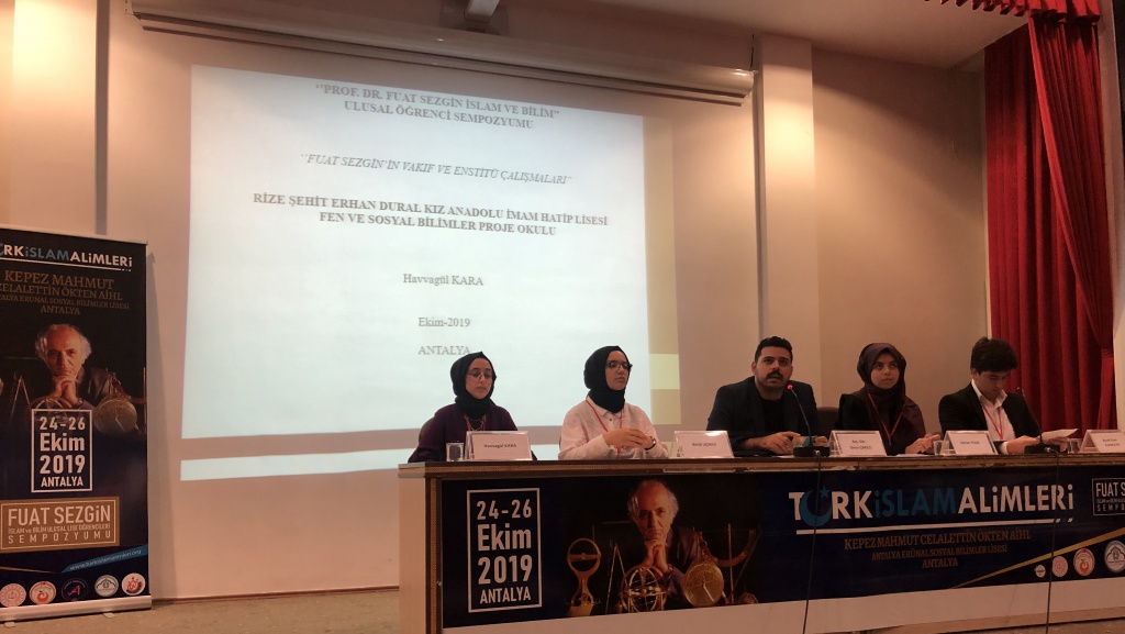 Antalya'da Kepez Mahmut Celalettin Ökten İHL ve Erünal Sosyal Bilimler Lisesi'nin organize ettiği 24-26 Ekim "Fuat Sezgin İslam Bilimi ve Tarihi Sempozyumu'na"ülke genelinde farklı illerden toplam 86 bildiri ile katılım sağlandı.