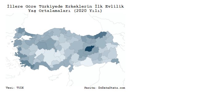 TÜİK tarafından açıklanan verilere göre resmi olarak ilk evliliğini 2020 yılında yapmış olan kadınların ortalama evlenme yaşı 25.1 iken erkeklerin ortalama evlenme yaşı 27.9 oldu.