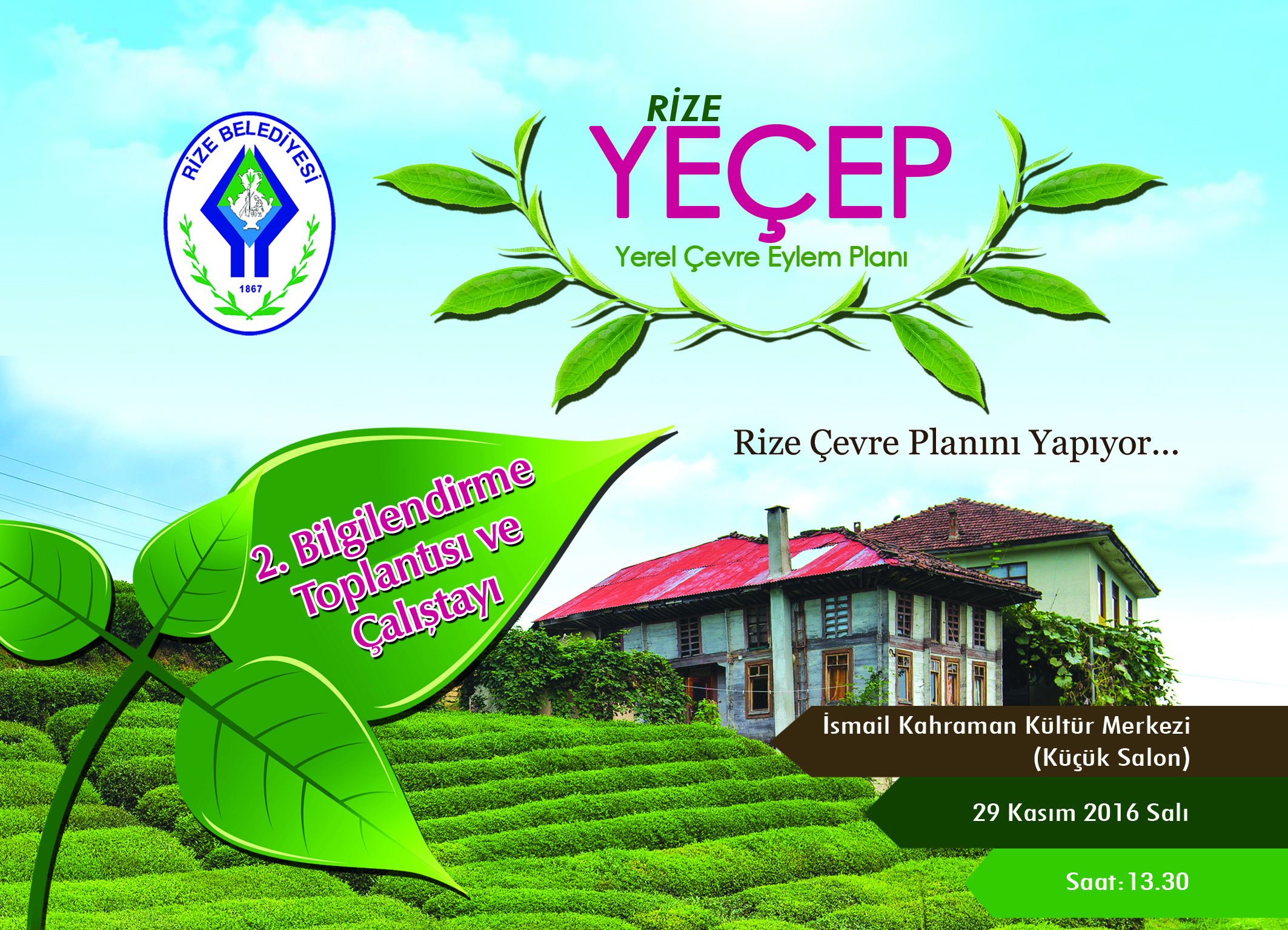 Rize Belediyesi tarafından başlatılan Rize Yerel Çevre Eylem Planı çalışmaları için 2. Bilgilendirme Toplantısı ve Çalıştayı, 29 Kasım Salı günü İsmail Kahraman Kültür Merkezinde saat 13.30 da yapılacak.