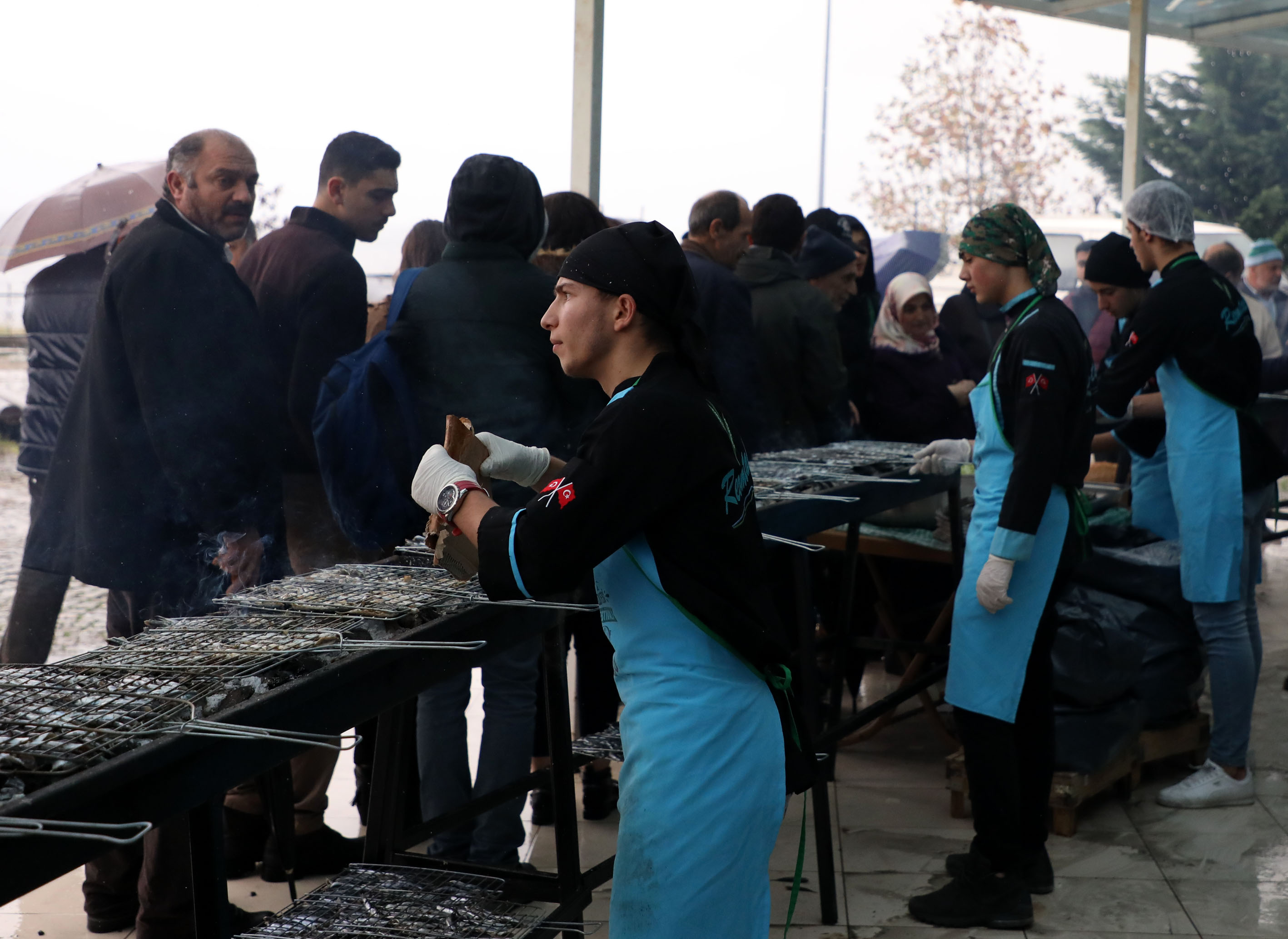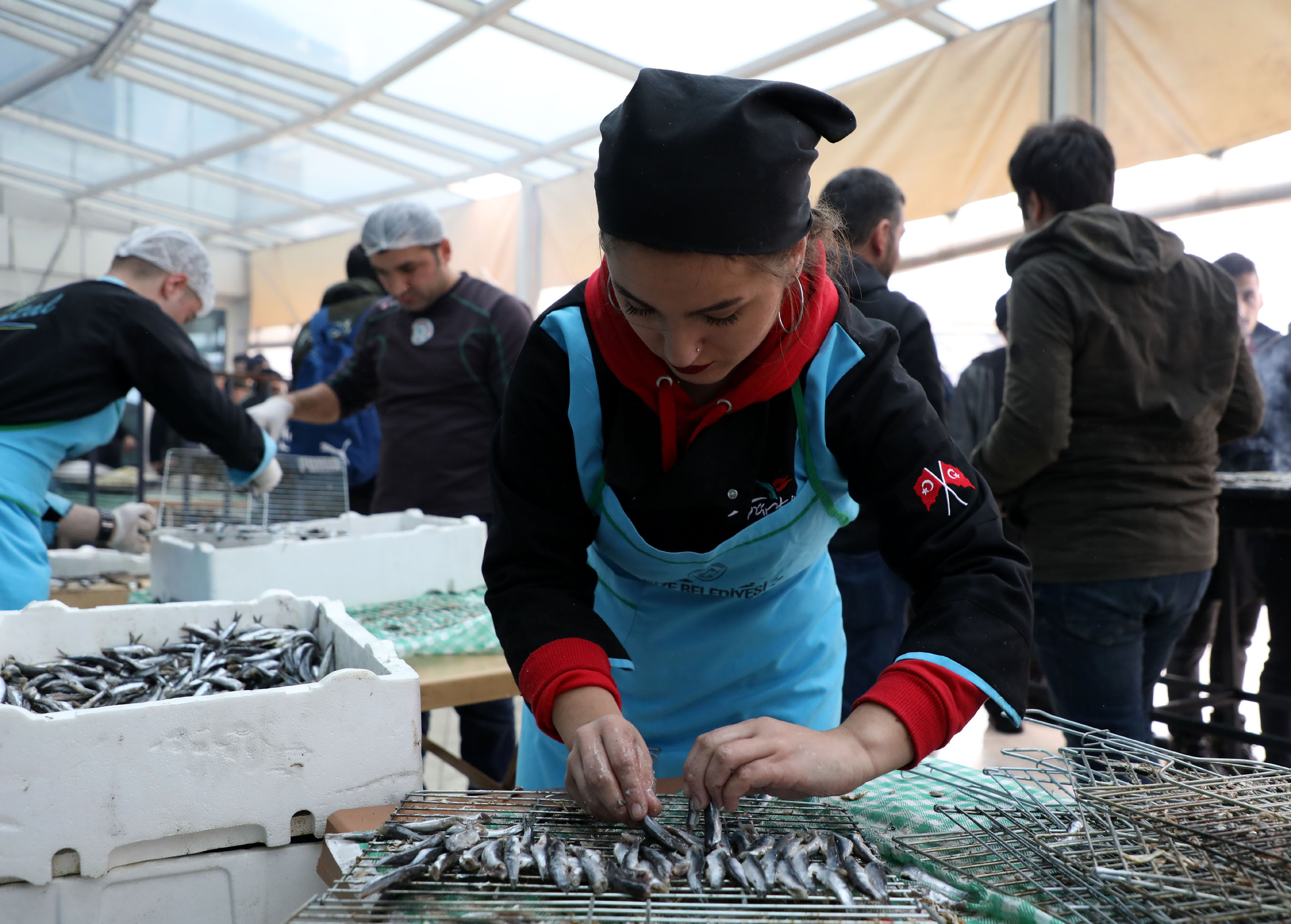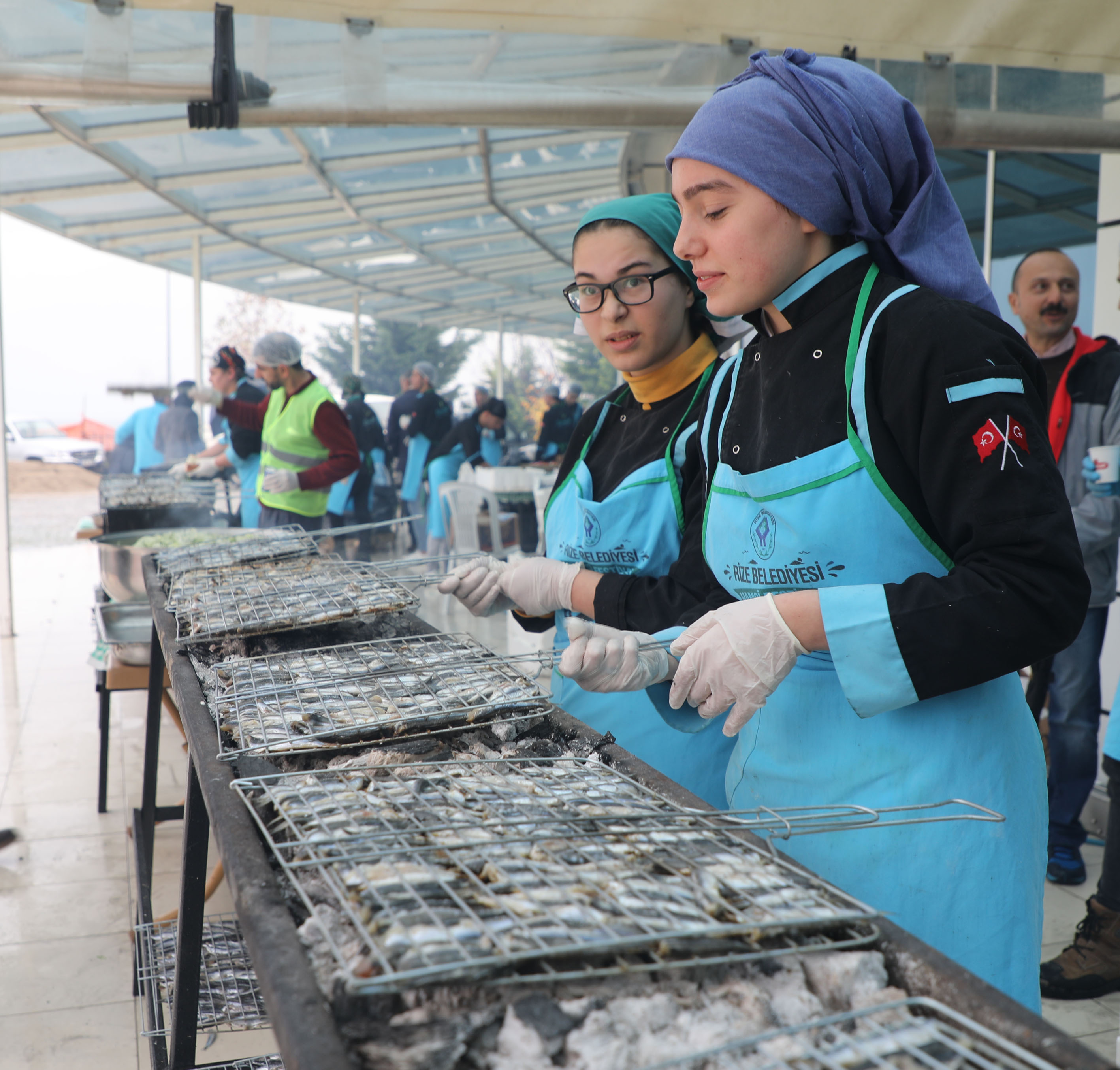 2 günde ayıklanan 1,5 ton hamsi, Ekrem Orhon Turizm Otelcilik Mesleki ve Teknik Anadolu Lisesi mutfak bölümünde görevli 2 öğretmen, 16 öğrenci ve belediye personeli tarafından 30 metrelik 12 ızgarada pişirildi.