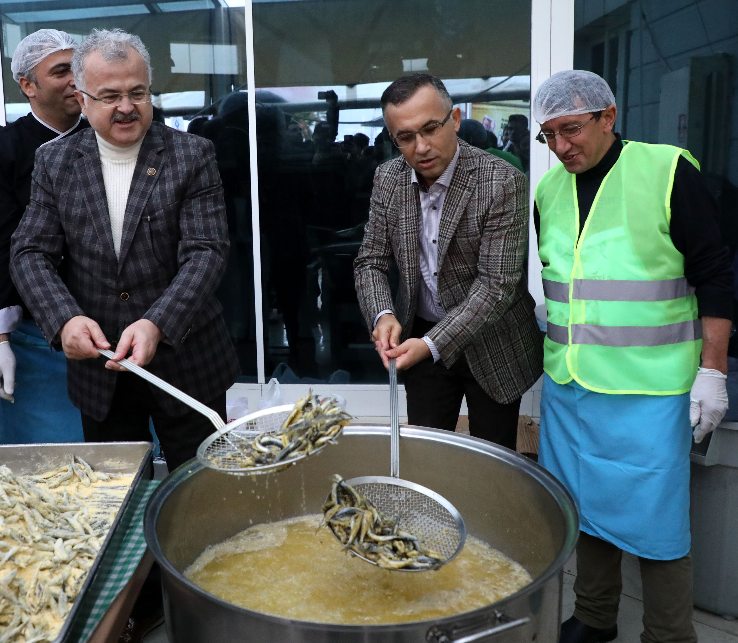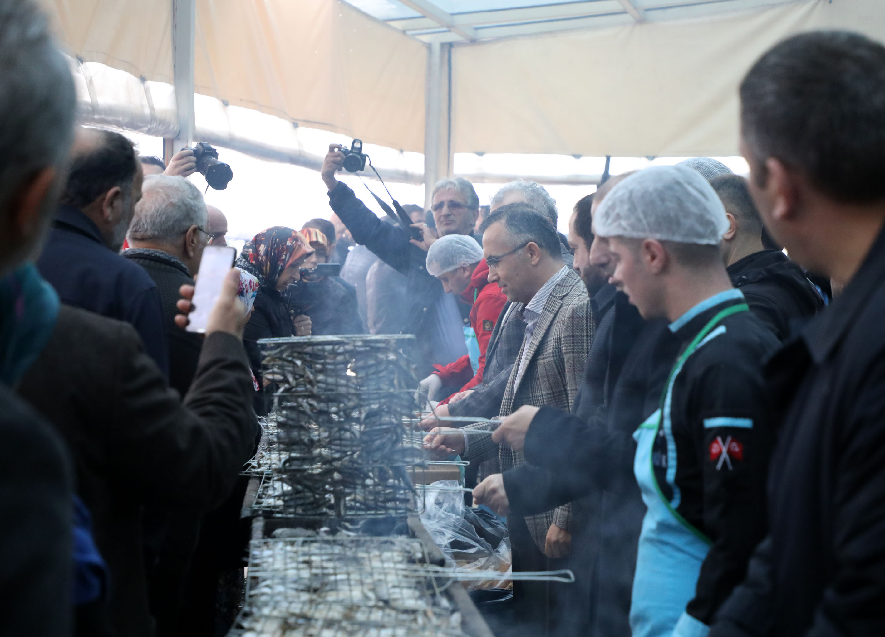 Bir süre ızgaranın başına geçen Vali Kemal Çeber ile Belediye Başkanı Reşat Kasap da pişirdikleri hamsileri vatandaşlara ikram etti.