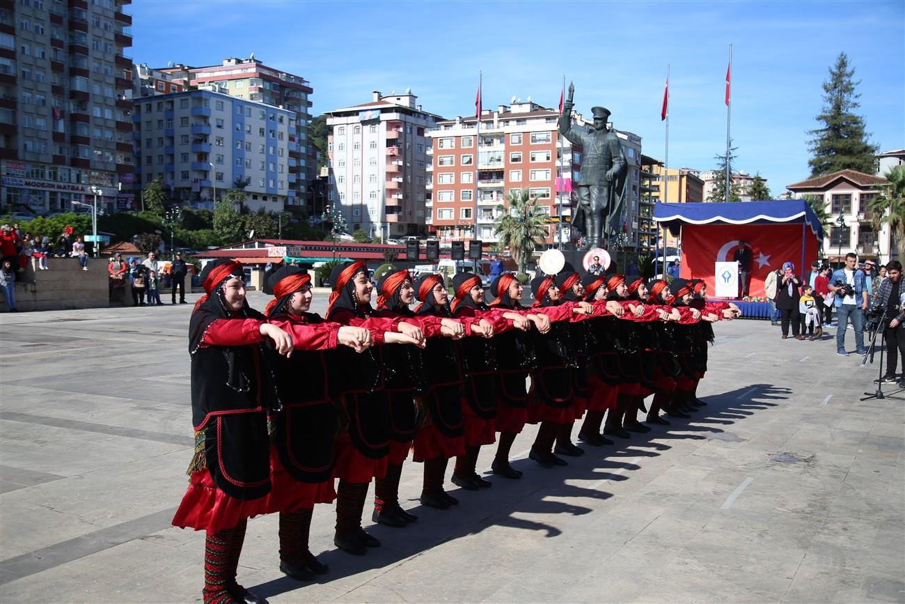 Öğrenciler tarafından okunan şiirler, sergilenen halk oyunları gösterileri ve İl Milli Eğitim Müdürlüğünce düzenlenen 29 Ekim konulu resim dalında dereceye giren öğrencilere ödüllerinin verilmesi ile süren tören, resmi geçit ile son buldu.