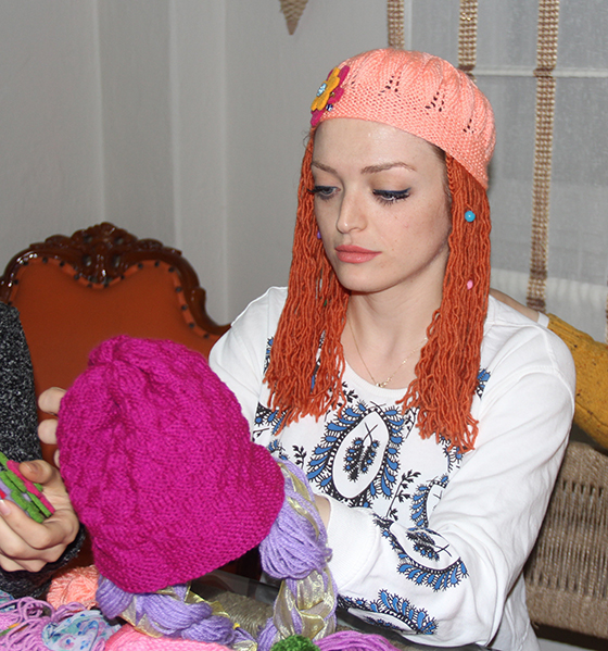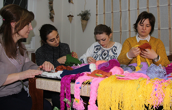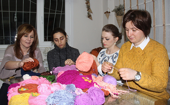 Rize’de Ebruli Yaşam Derneği üyesi bayanlar, lösemi hastası çocuklara hediye etmek üzere üzerlerinde ipten saçlar bulunan bereler örüyor.