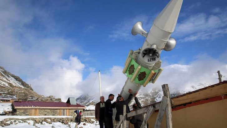 Rize'nin İkizdere ilçesi Karzavan Yaylası'nda çelik varillerin birleştirilmesiyle oluşturulan 7 metrelik minarenin kış aylarında çığdan zarar görmemesi için geliştirilen ilginç yöntem her yıl uygulanıyor. Elle çevrilebilen makaralı bir sisteme çelik telle bağlanan minare, kış aylarında çığdan korunması için yere yatırılıyor. Köylüler bu kış da makaralı düzeneğe bağlı minareyi yere yatırarak korumaya aldı.
