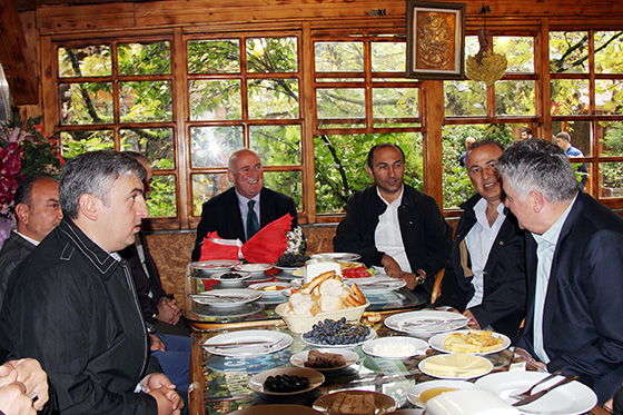 Ç. Rizespor-Bursaspor mücadelesinden önce Rize'de Dedemin Bağı Et ve Balık Lokantası'nda bir araya gelen 2 takımın yöneticileri ve taraftarları, dostluk mesajları verdi. Ç. Rizespor Başkanı Metin Kalkavan, "İlk defa bir takımın taraftarlarını karşıladım. Bu bir milattır. Kavgayla bir yere varılmaz. Kavga etmek istiyorsanız kum torbası alın evde ona vurun" dedi.