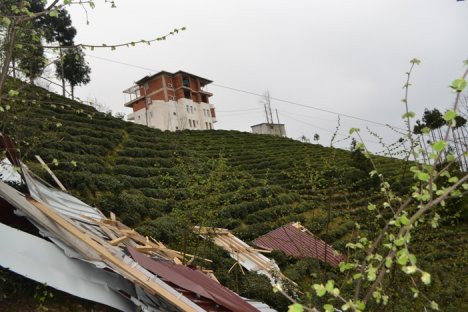 Rize Merkeze bağlı Kurtuluş Köyü’nde Şafak Baloğlu adlı vatandaşa ait 4 katlı evin çatısı meydana gelen fırtınayla beraber uçtu. 1 tonun üzerindeki çatının 200 metre uçması Rize’deki fırtınanın ne denli yüksek olduğunu gösterdi.