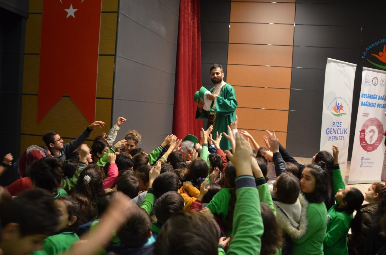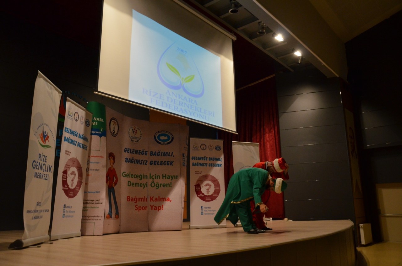 Dernekler Federasyonu’nun yürüttüğü ‘Geleneğe Bağımlı,Bağımsız Gelecek’ adlı proje bugün Rize Gençlik Merkezinde start aldı. Öğrencilerin yoğun katılım gösterdiği program,Geleneksel Orta Oyunu ile izleyicilere bağımlılık konusunu işleyen oyunlarını oynadı.