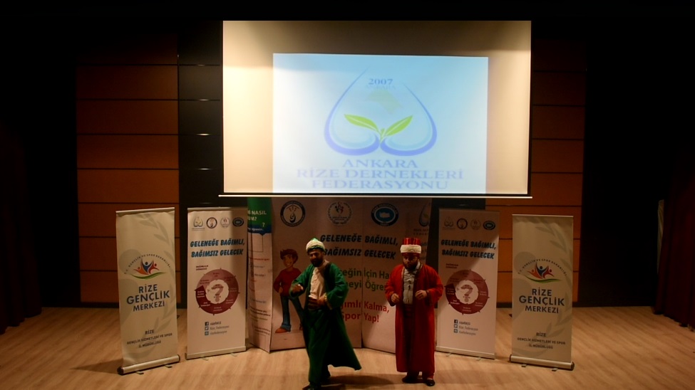Kavuklu ve Pişakar karakterleri ile bağımlılığın gençlerimizi nasıl tehdit ettiği , nasıl zararlara yol açtığı anlatılırken,oyunun sonunda gençlere oyun hakkında soru cevap yapıldı. Geleneksel Tiyatro oyununun bitmesinin ardından konuşma yapmak için kürsüye çağrılan Rize Dernekler Federasyonu Genel Sekteri ve Proje Koordinatörü Abdurrahman AKSU konuşmasında ; Bizler İçişleri Bakanlığı’nın desteği Gençlik Spor Bakanlığı ve Genç Demokratlar Vakfı’nın proje ortaklığıyla Rize Dernekler Federasyonu olarak bir yola çıktık.